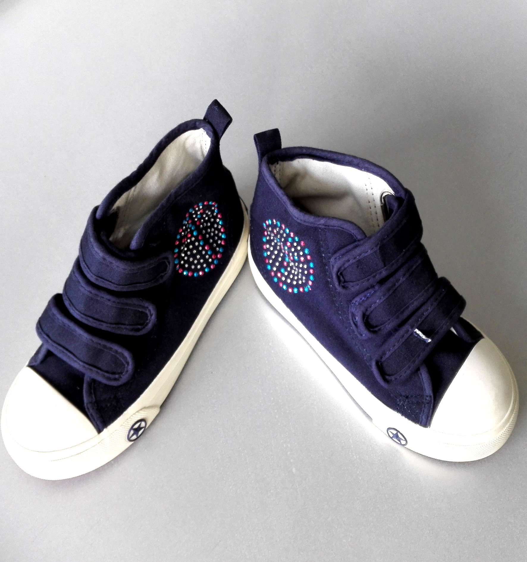 Rhinestones has special effect. It looks great. This printing style can make the logo or shape looks shining. Many women's dress and children's wear companies prefer to use this technology.
